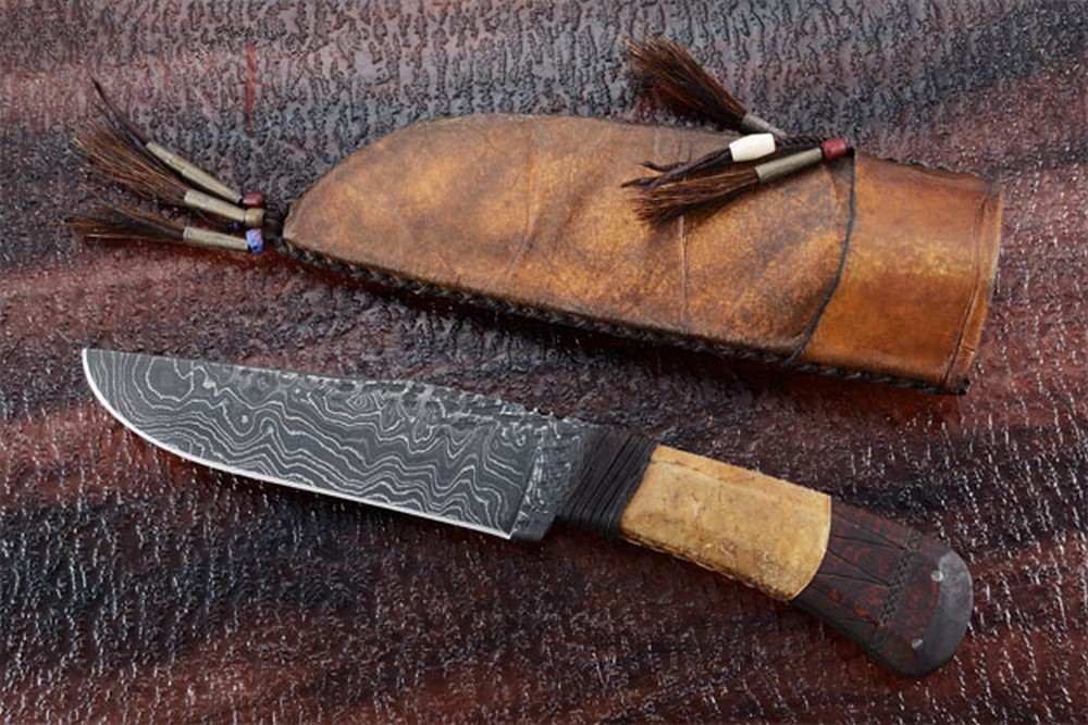 Product Description for Field Knife with Maple, Tribal Markings and Damascus