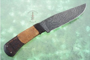 Product Description for Field Knife with Maple, Tribal Markings and Damascus