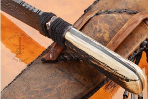 Product Description for Belt Knife with Elk Antler and Damascus