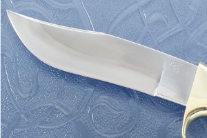 Each knife is pre-tested for edge flex and cutting ability before assembly. The heat treatment is a highly detailed process that was developed between Mastersmith Ed Fowler and Bill Burke after years of trial and experimentation. This technique, involving low temperature forging, triple quenching and triple tempering creates some of the sharpest and most long lasting edges found anywhere. A differential heat treatment results in a blade with a soft, supportive spine and a keen, long lasting edge. Bill's mark is on the left side of the blade. The blade measures 5-1/4 inches.