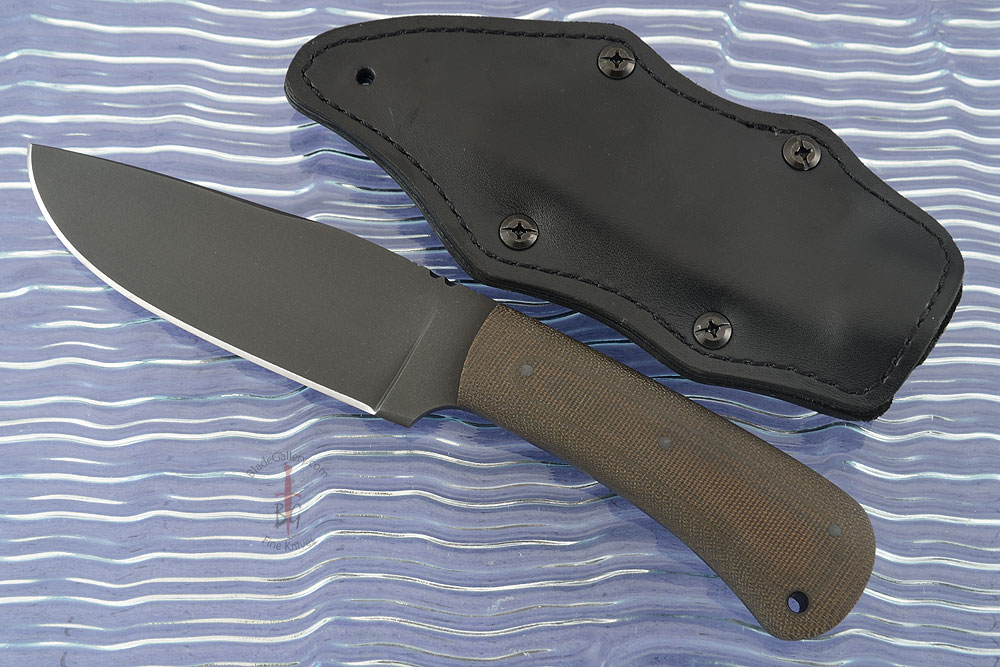 Green Micarta scales provide a sure, comfortable, non-slip grip. A Caswell finish is both non-reflective and provides limited protection from rust. The ambidextrous Kydex-lined sheath can be worn vertically or horizontally with minor adjustments.