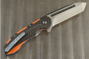 Product Description for Kenpachi Flipper Tanto with Orange G-10 and Lightning Strike Carbon Fiber (IKBS)