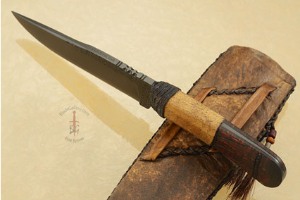 Sheath: Two sheaths: A standard, hard use WKII Kydex and leather sheath and a rawhide covered sheath with tin cones, horse hair and glass beads
