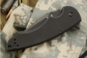 The compact blade is made from 154CM stainless steel. 154CM stainless steel, originally developed for heavy-duty industrial use, gives the blade superior corrosion resistance, toughness, and excellent edge retention. A BK1 coating prevents light reflection. A cut out, jimped ramp offers a solid thumb purchase.