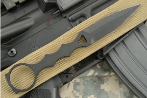 The SOCP Dagger is a one-piece design made from 440C stainless steel with a black finish. The skeletonized dagger is the optimal tool for self-defense because it allows the user to maintain dexterity and manipulate other objects without putting down the knife. A finger loop makes it easy to deploy and use quickly. The specialized black sheath design also integrates into gear and webbing while keeping a low profile. It also includes a pocket clip and a lanyard.