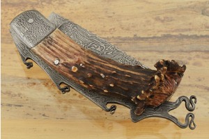 Product Description for Backlock Folder with Stag Crown and Damascus