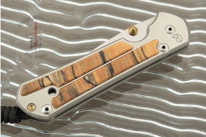 Description: Chris Reeve Knives are some of the finest semi-production knives made. This Sebenza 21 features spalted inlays set into the titanium frame. Dark striations moving through this light toned wood is particularly dramatic.