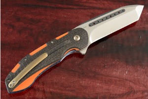 Product Description for Kenpachi Flipper Tanto with Orange G-10 and Lightning Strike Carbon Fiber (IKBS)