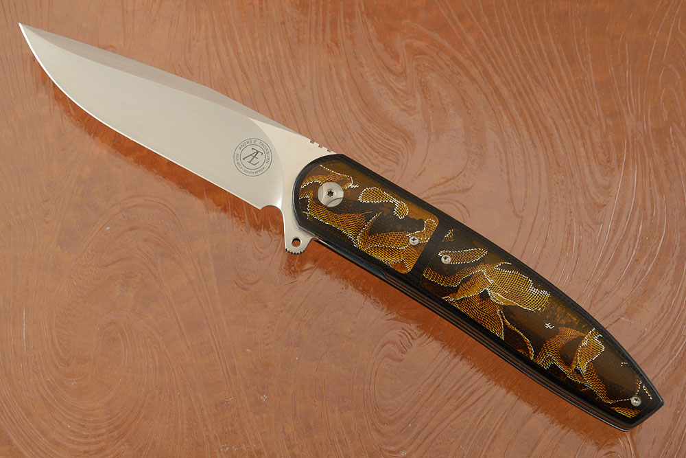 Description: South African knifemaker André Thorburn creates an exceptional folder at an amazingly low price. This L28 Interframe Flipper is a spectacular EDC though it will feel comfortable in nearly any collection.