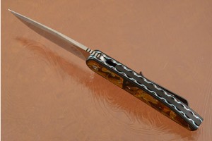 The clip point N690 stainless steel blade is differentially finished to emphasize his clean grind lines. N690 is a super-steel created by Bohler in Austria. It takes an incredibly sharp edge and holds on to it. The increased toughness gives it better resistance to edge chipping. The blade is hollow ground for an easy to maintain edge.