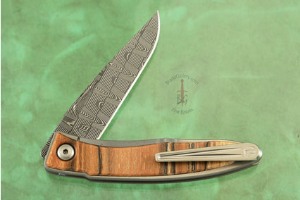 Handle: Spalted beech wood scales inlaid into a 6Al4V titanium frame