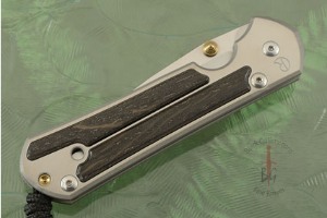 Description: Chris Reeve Knives are some of the finest semi-production knives made. This Sebenza 21 features bog oak inlays set into the titanium frame. This wood has been buried in a Nordic peat bog for hundreds or sometimes thousands of years. The extremely low oxygen conditions of the bog protect the wood from normal decay, while the underlying peat provides acidic conditions where iron salts and other minerals react with the tannins in the wood, gradually giving it a distinct dark brown to almost black color.