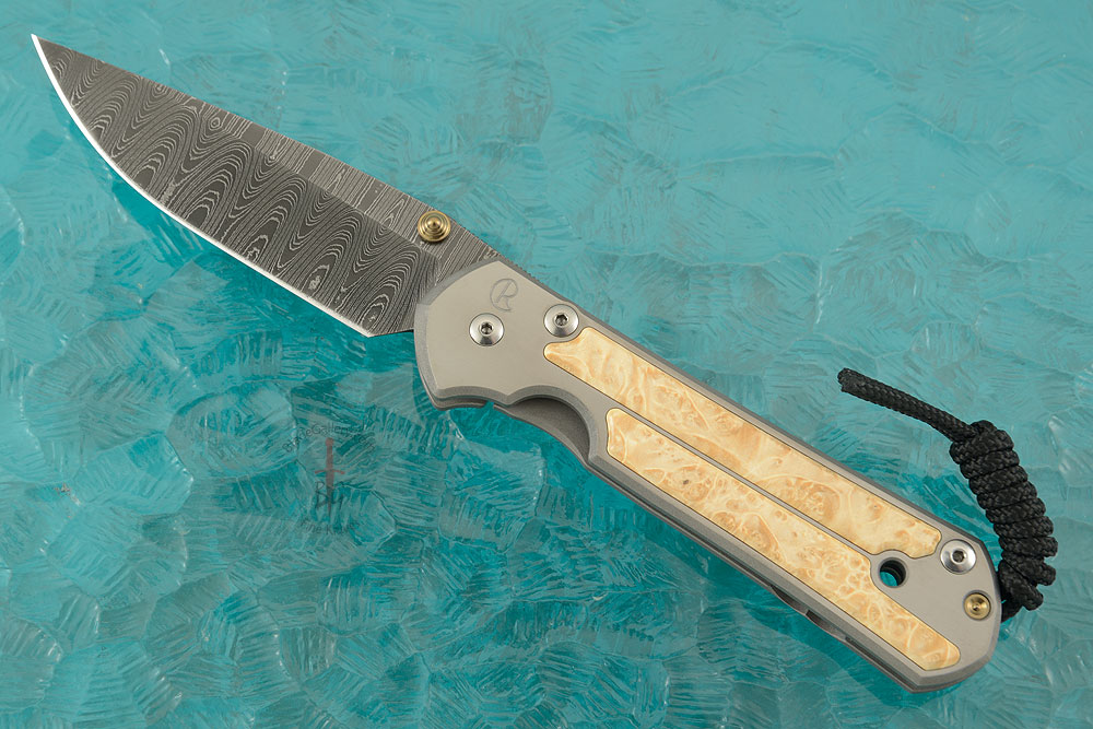 Description: Chris Reeve Knives are some of the finest semi-production knives made. This Sebenza 21 features premium box elder inlays set into the titanium frame along with a blade formed from high performing stainless ladder pattern damascus.