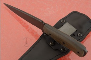 Sheath: Ambidextrous black leather covered Kydex sheath