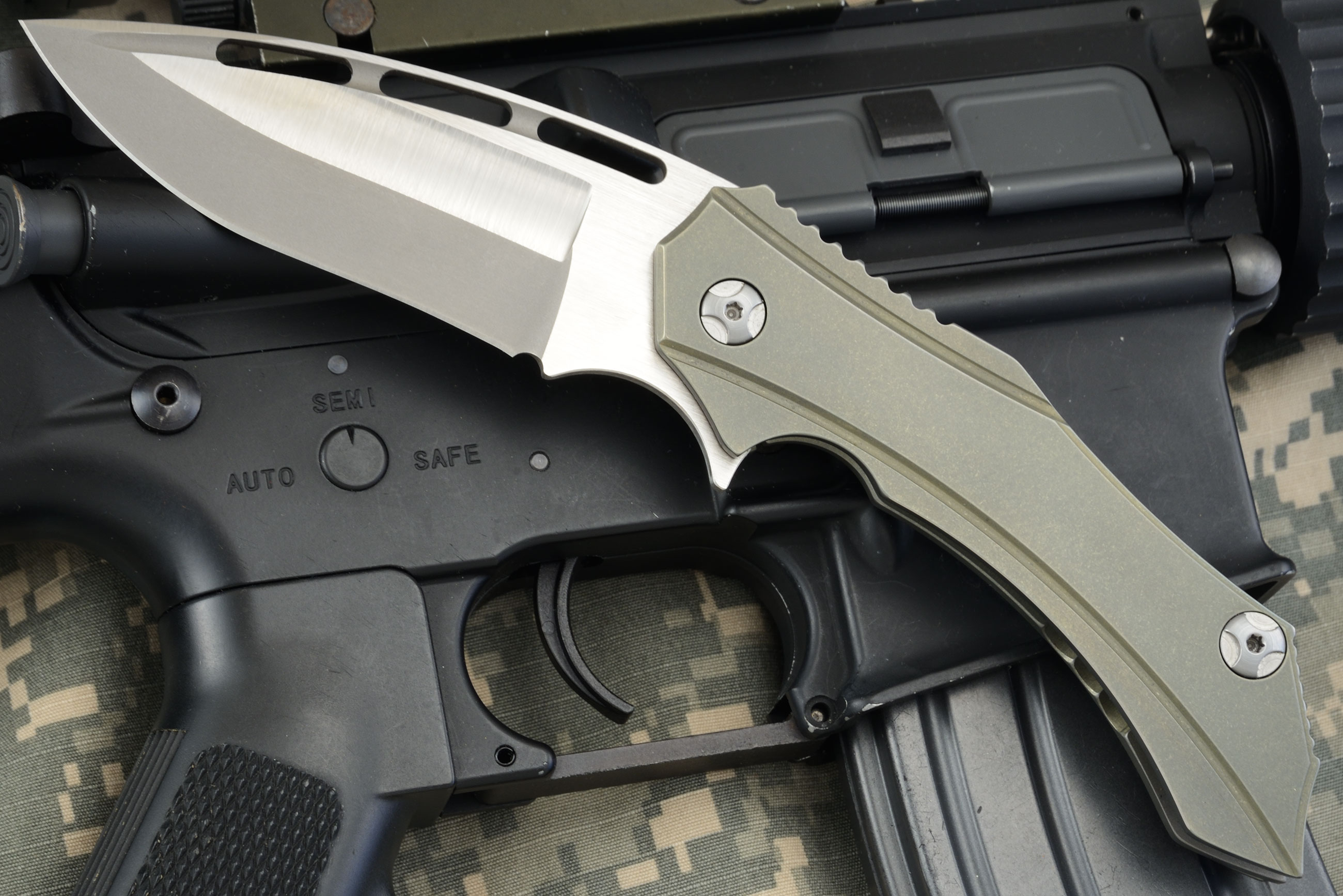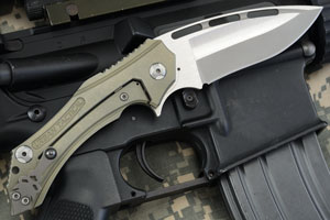 Description: This Mikkel Willumsen custom Urban Tactical MadDog Flipper features a full titanium frame handle. The durable CPM-154 stainless steel blade has a compound grind and is differentially finished.