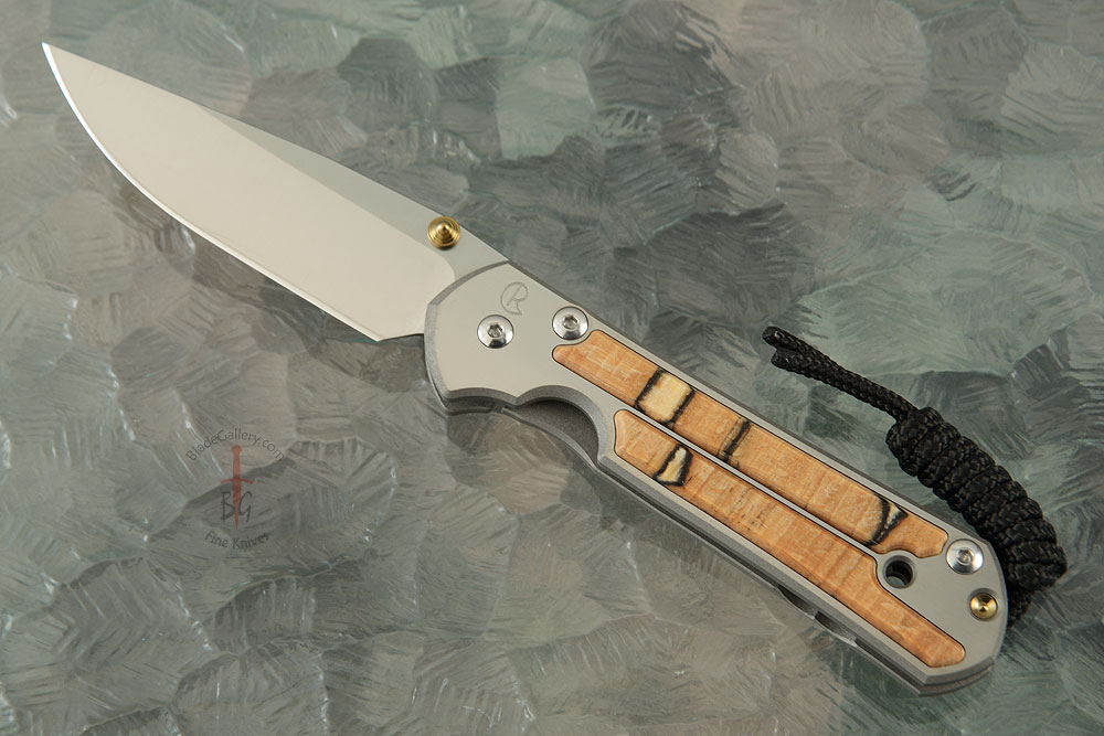 Description: Chris Reeve Knives are some of the finest semi-production knives made. This Small Sebenza 21 features spalted beech inlays set into the titanium frame. Dark striations moving through this light toned wood is particularly dramatic.