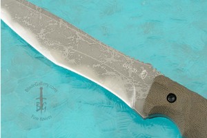 Blizzard shows Kikuo's skill at its best. The OU-31 tool steel blade will have exceptional edge holding. OU-31 is a Japanese PM (powdered metallurgical) steel with micro-fine crystalline structure that embodies many of the best attributes needed for knives. The steel is hardened to 64 Hrc (very hard!) and has more than 3 times the toughness of D2. The blade features Kikuo's famous compound grind -- a high performance Hamaguri-ba (convex) grind at the front and a hollow grind toward the handle. Kikuo's compound grind brings together a very strong edge with a precision cutting edge. The blade features a non-reflective disruptive acid finish.