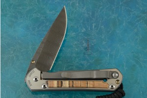 Handle: Differentially finished titanium with spalted beech wood inlays