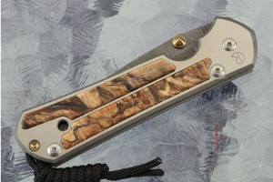 Description: Chris Reeve Knives are some of the finest semi-production knives made. This Sebenza 21 features spalted beech inlays set into the titanium frame. Dark striations moving through this light toned wood is particularly dramatic. This Sebenza also has a blade formed from high performing stainless raindrop pattern damascus.