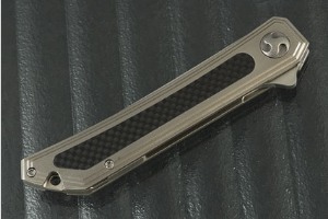 Handle: Orange peel textured titanium with carbon fiber inlay