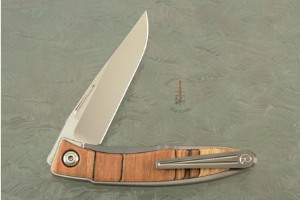 Handle: Spalted beech wood scales inlaid into a 6Al4V titanium frame