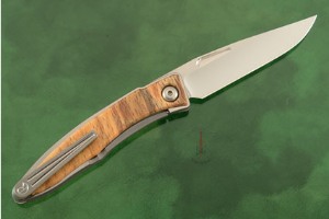 Handle: Spalted beech wood scales inlaid into a 6Al4V titanium frame