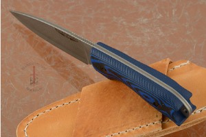 The scales are formed from black and blue layered G10, machined for a perfect, contoured grip with a micro-texture to offer a secure grip without being abrasive. G10 scales are set on a full tang for strength and durability.