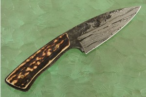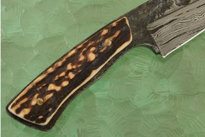Product Description for Damascus Brut de Forge Utility Knife with Stag