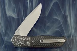 Product Description for L36M Flipper with Silver Strike Carbon Fiber and Engraved Zirconium with Silver Inlays (IKBS)