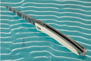 Description: Chris Reeve Knives are some of the finest semi-production knives made. This Mnandi features cream toned ancient wooly mammoth ivory scales with a stainless damascus blade. Sadly, mammoth ivory scales are now a thing of the past for Chris Reeve Knives. Though they stopped taking orders for mammoth ivory several years ago, CRK has been continuing to complete pre-existing orders. Regretfully, they have just told us that they do not plan to make any more mammoth ivory knives.
