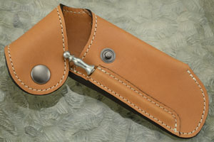 Description: This brown leather belt pouch is made in France by Fontenille Pataud, renowned Laguiole knifemaker. The belt pouch is accompanied by a metal honing rod to keep your blades razor sharp. The sewing and the leather are from an excellent quality. This will protect your knives either in your pocket or your belt.