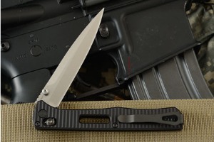 Description: This minimalist masterpiece won't get in your way but will be there when you need it, and that's a FACT! This modern spin on the classic stiletto features a spearpoint CPM-S30V blade. CPM-S30V is an American-made and developed premium grade stainless steel created especially for knives. It is a powdered metallurgical steel with a uniform carbide distribution and clean steel properties. This gives the blade superior corrosion resistance, toughness, and edge retention. The blade can be easily deployed using the dual thumbstuds.