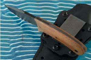 Sheath: Ambidextrous leather covered Kydex sheath