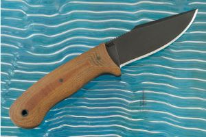 Handle: Tan Micarta set on a distal tapered full tang