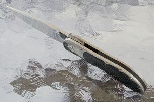 The frame is formed from satin finished titanium with carbon fiber inlays on both sides. The ergonomic handle and jimping along the spine provide a solid, secure grip. The satin finished, 3D machined titanium pocket clip is mounted for right-handed, tip-up carry.