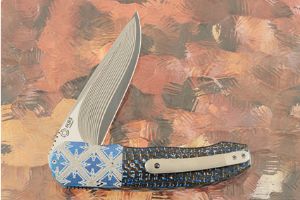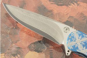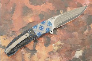 L48 Flipper with Blue/Silver Carbon Fiber, Titanium, and SG2 San Mai Damascus (Ceramic IKBS)