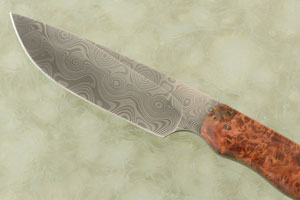 Product Description for Drop Point Hunter with Maple Burl and Damascus