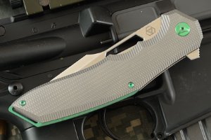 Product Description for Gamma Flipper with Satin Finished M390 and Titanium - Green Anodized Accents (#23 of 100)