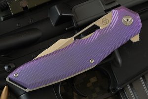 Description: The Gamma folder is designed by knife maker Ilya Pasumanskiy of Seattle, Washington. Based on Ilya's custom Gamma, this midtech was produced by WE Knives to his exact standards. It was then finished by hand and anodized by Ilya himself. Only 100 mid tech Gamma Flippers were made and this is #46.