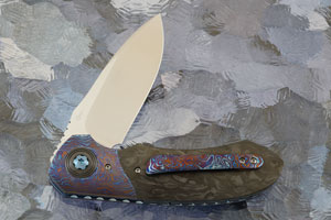Handle: Marbled carbon fiber set on anodized titanium liners