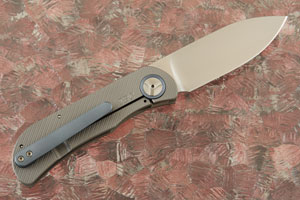Handle: Textured, bead blasted titanium with an anodized titanium pivot collar